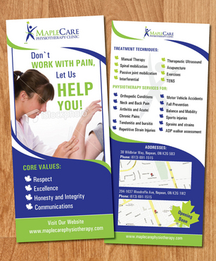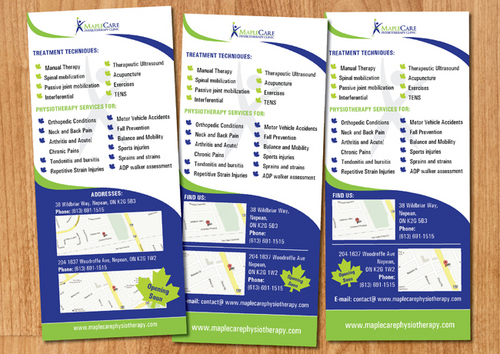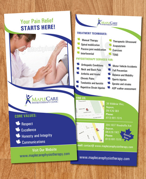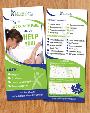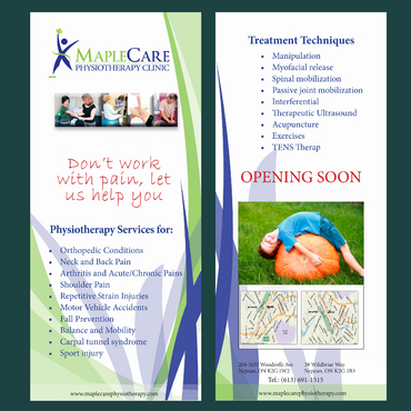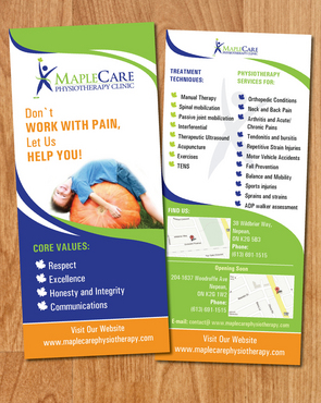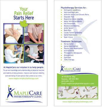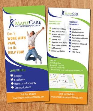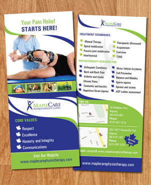 Need a 2 sided flyer designed. Should be simple yet classy to look at. Visit our website to get more ideas; www.maplecarephysiotherapy.com