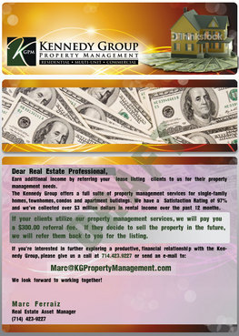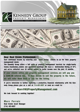 Marc Ferraiz Real Estate Asset Manager 4454 Cwerritos Ave, Los Alamitos Ca 90720 marc@KGPropertyManagement.com www.KGPropertyManagement.com