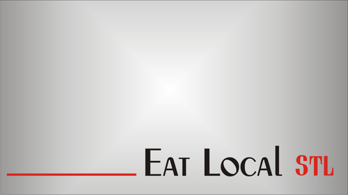Grey/Silver Background, Black letters for "Eat Local", Red letters for "STL". Possibly light blue or regular blue letters for STL. We are open to any creative ideas.
