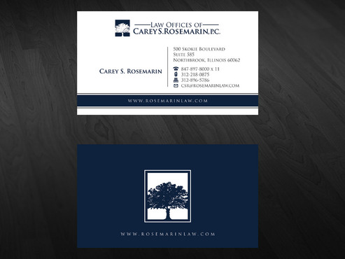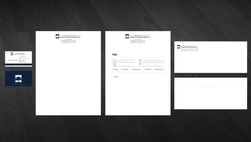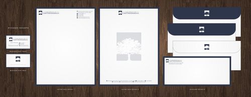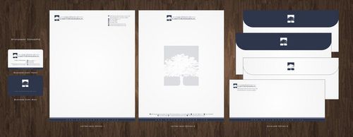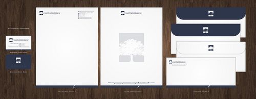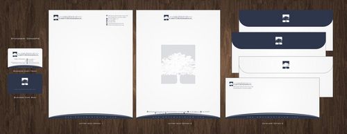 I wish to use the logo that appears on my website, except for the color, which I prefer to be either black or navy blue. However, I am not opposed to using the variant of the logo showing the tree centered on top, rather than to the side. It depends on the overall appearance. Also, for the stationery letterhead, I prefer to have all contact information at the top of the page, rather than on the bottom. And, because new personnel may be added to the firm, please anticipate that the writer's fax and e-mail address will be added separately and thus not printed. Thank you.