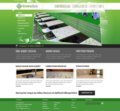 EnviroSlab is a company that manufactures stone slabs that are made from recycled glass chips and an epoxy matrix. The stone surfaces are a beautiful addition to any interior space, and are an environmentally responsible option for elegant counters, floors, and decorative finishes.