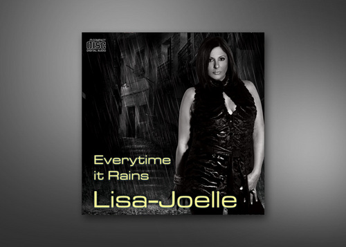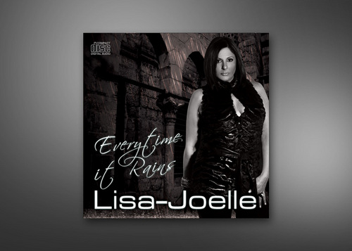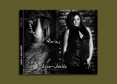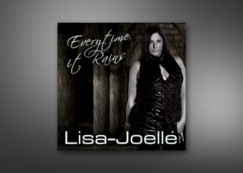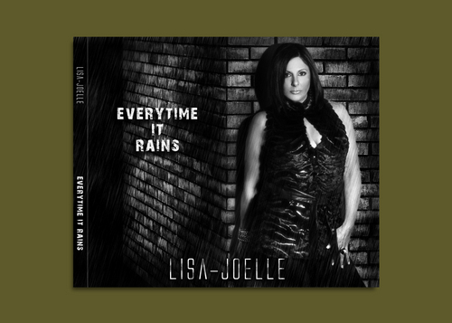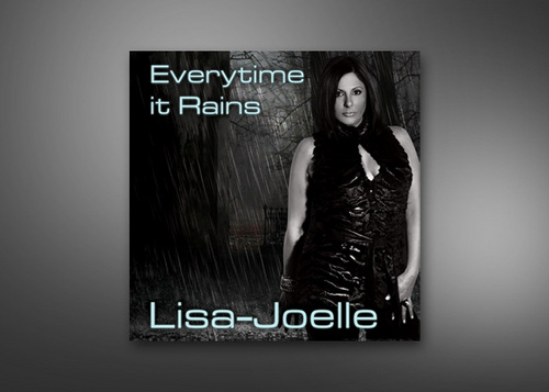 Create a cd cover for a electronic dance song, "Everytime It Rains". I want the artist picture (black and white supplied) in some kind of rain sceen. Maybe on a brick wall on streets, dark alley. Must include song name and artist Lisa-Joelle.