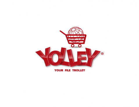 Interesting font text "Yolley" is under the logo and tagline with smaller font is "Your file trolley".