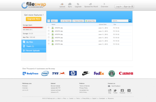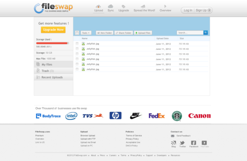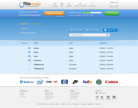 FileSwap.com subpage - File Manager