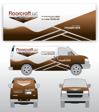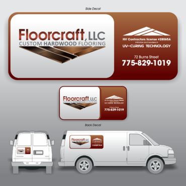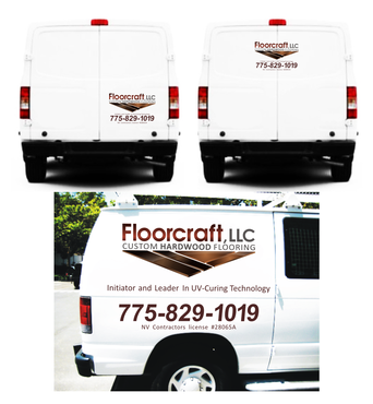 van decal for Floorcraft, LLC Hardwood Flooring. Van decals sizes are ( 5'w x 2'h ) and ( 2'w x 1'h ).