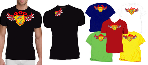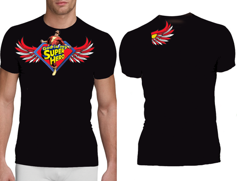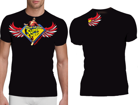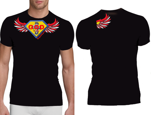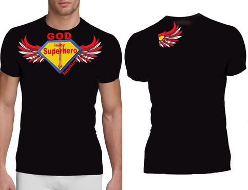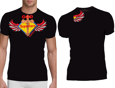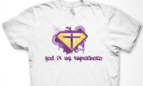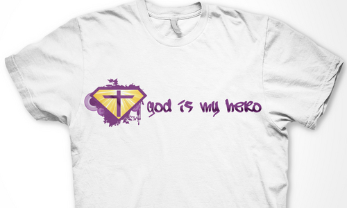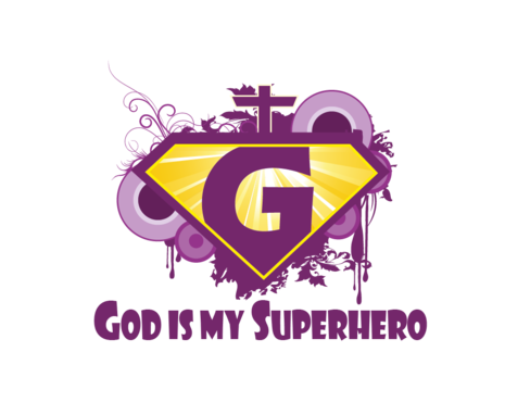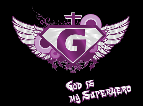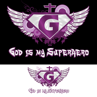 Utilizing Superman Shield create a design to go inside the shield which reflects/represents the following saying, "God is my Superhero" Design should be fashion forward and can use images, abstract designs and/or graffiti type font and wording. Color options should be limited to no more than 3 colors. The wording "God is my Superhero" should be also drawn on design outside of the shield on the bottom right in childish font to compliment design. T-shirt colors will be solid and will vary between: Black, Purple and White so color selection of design should compliment these colors. Design should be done in scale to fit Toddler and Young Child shirt sizing 3 to 6 years of age.