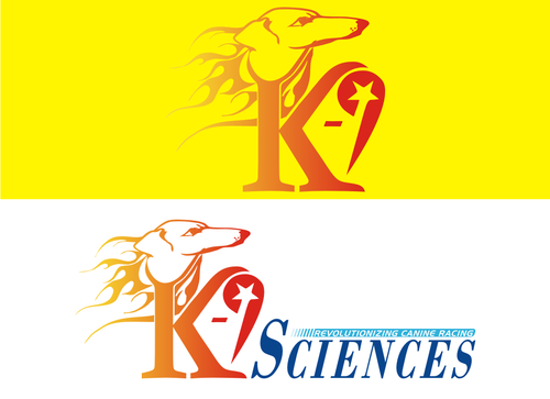 The brand name is K-9 Sciences and must have a running greyhound dog in it or only the head of a running greyhound dog. The greyhound dog must express speed and be in a race. I like to see a full body and/or a head.