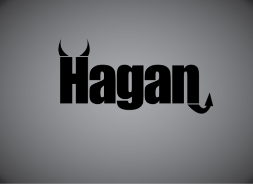 Using the full name "Hagan" for the logo but making a design out of the H. Possible make the H have a devilish looking horns at the top of the H and a stout base at the bottom. A devil tail going off of the bottom of the G.