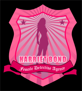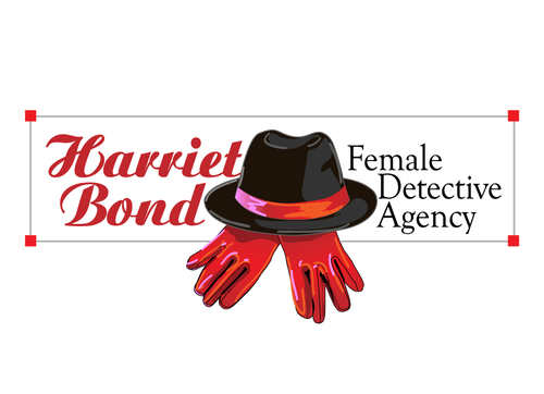 The logo would be an illustration of the character, along with the name Harriet Bond and the tagline Female Detective Agency.