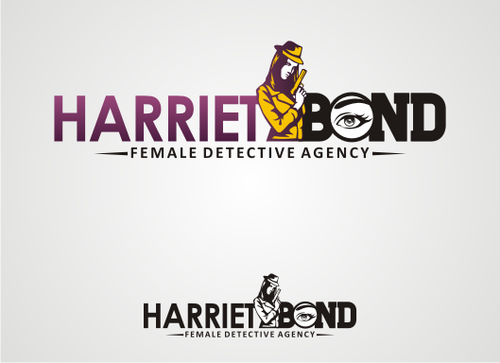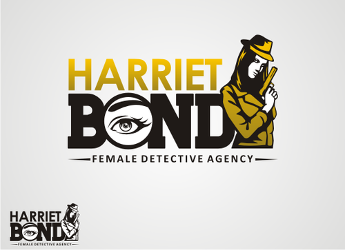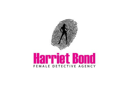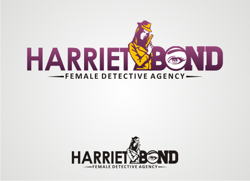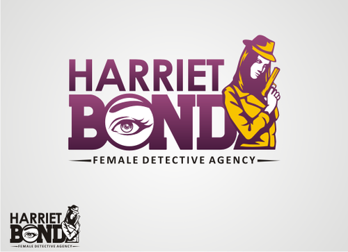 The logo would be an illustration of the character, along with the name Harriet Bond and the tagline Female Detective Agency.