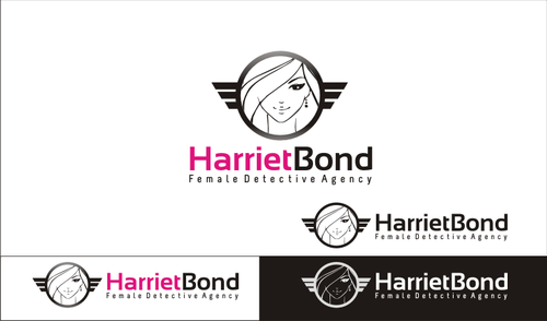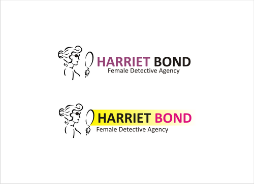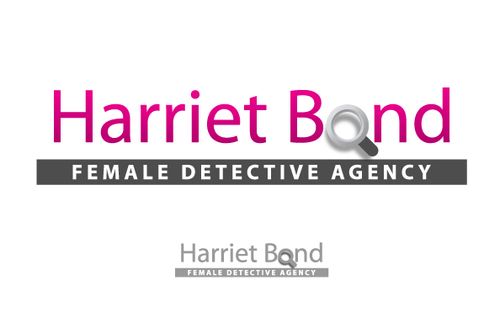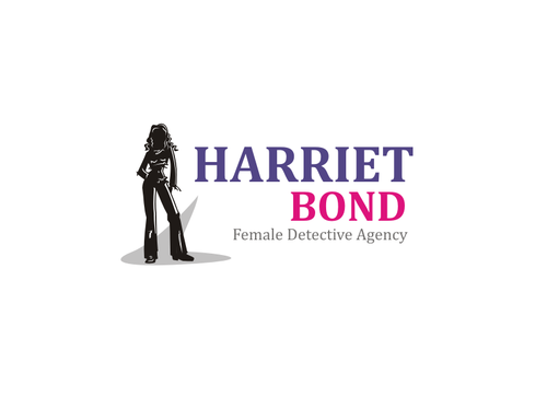 The logo would be an illustration of the character, along with the name Harriet Bond and the tagline Female Detective Agency.