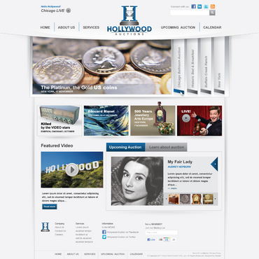 We are an Auction gallery, we buy, sell or trade anything of value. We specialize in fine jewelry, watches, US coins, gold, silver, platinum, fine art, antiques, general luxury item. We host live auctions very much like on tv and buy stuff like you may see on pawn stars. It's a "FUN" business. This site will be aimed as an about us site for the company. We also want it to host an e commerce site(Later not now), and a Live auction broadcast.