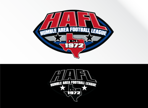 We are a youth football League in Humble Texas. We are celebrating our 40th aniversery this year and would like to celebrate that fact with a logo change. our website is www.humblefootball.org We like our current logo and have always been a purple colored logo until 3 years ago we went red,white,and blue... this new logo is to be featured on our website and league street sign i wouldn't mind seeing a purple version and red,white,and blue version. It can also just be HAFL instead of Humble Area Football League