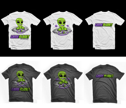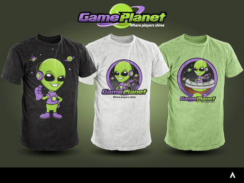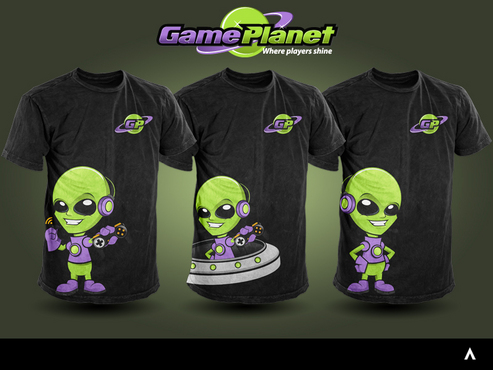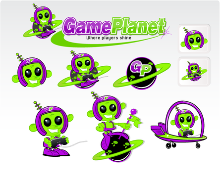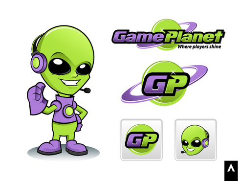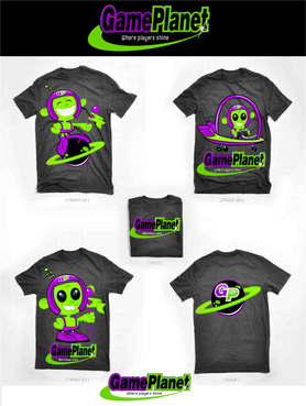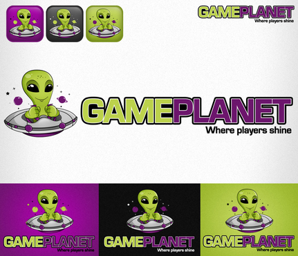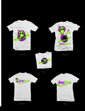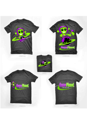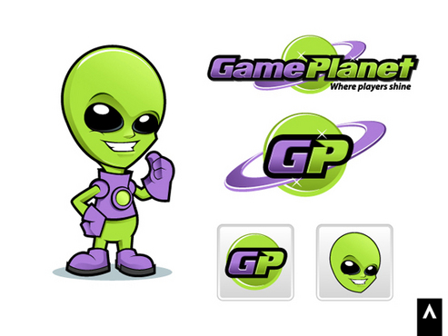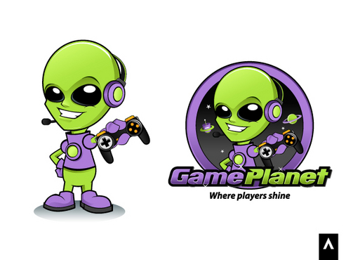 My company mascot will be an alien. So i for sure want an alien incorporated somewhere in the logo. Preferably in one of the letters of gameplanet or Im up for suggestions. I also would like a planetarium backdrop kinda feel to it, with stars, planets, moon, etc with lots of poppy colors.