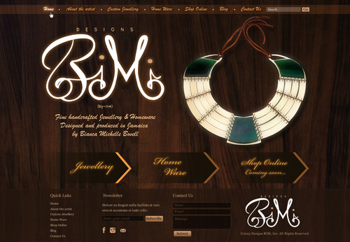 Designs BiMi is a new company which is just about to launch to the public. Designs BiMi is a line of handmade jewelry and home ware made with semi precious materials. All pieces are designed and made by me (bimi) Bianca Michelle Bovell. At the moment the brand is very small and the website will be primary used as an online catalogue, eventually hoping to start online buying.