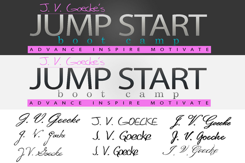 I want to be able to use my name "J.V. Goecke" as a complementary logo that can be used seperately and in tandem to the "Jump Start Boot Camp" logo.