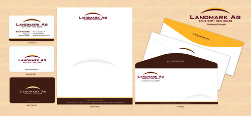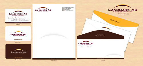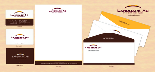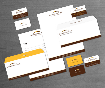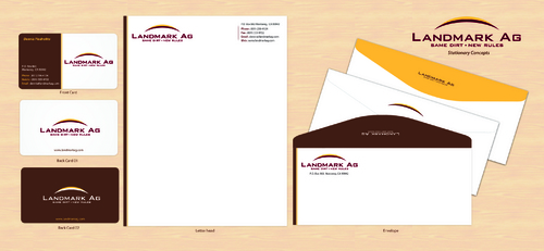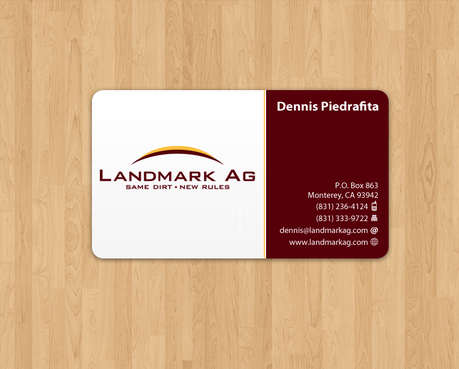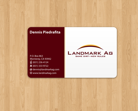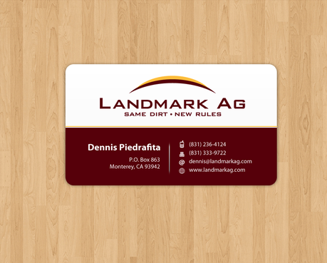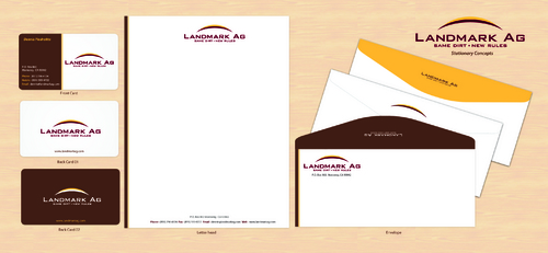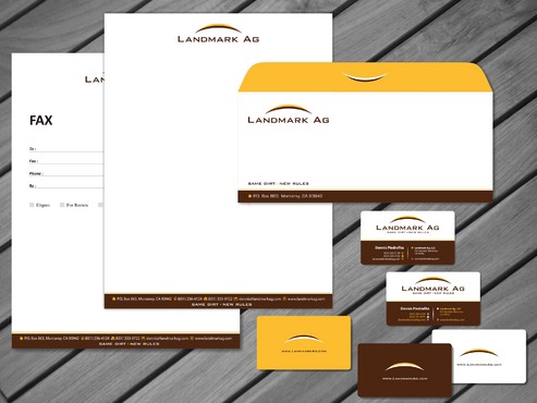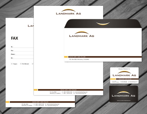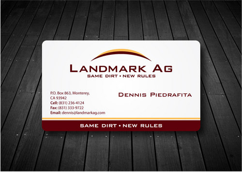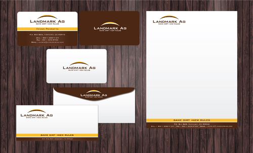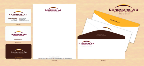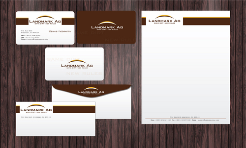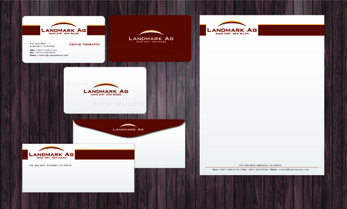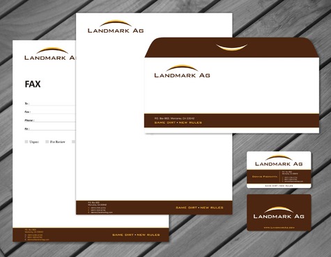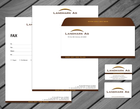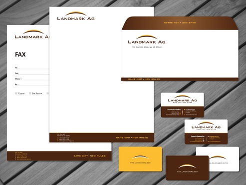 1. I want to use my logo and will upload it. 2. I like clean, uncluttered design. 3. OK to think a little out of the box. 4. May be OK to use a different font than logo. 5. May be OK to use tagline "same dirt - new rules" differently (i.e., not right under Landmark Ag as shown in logo).