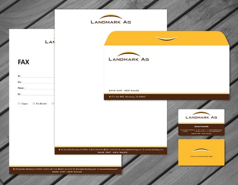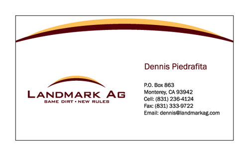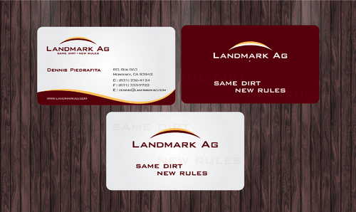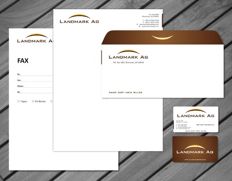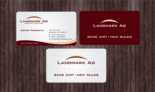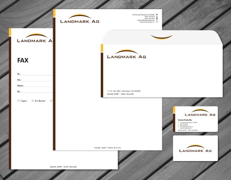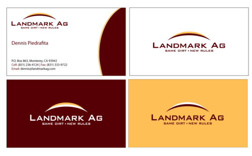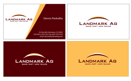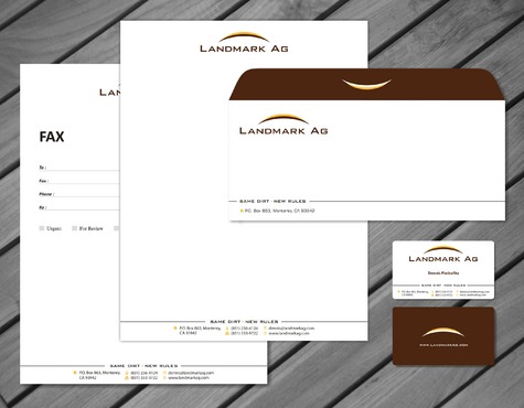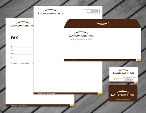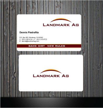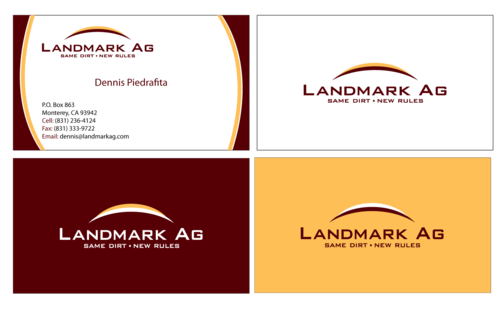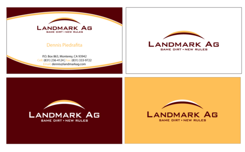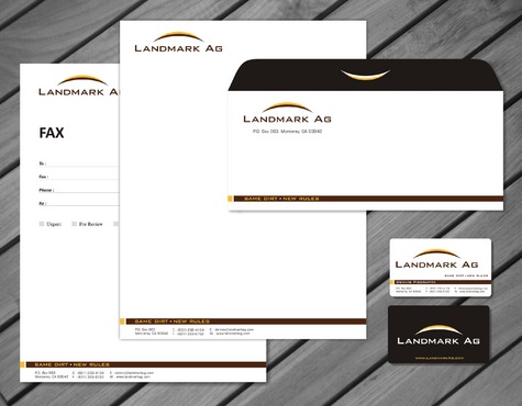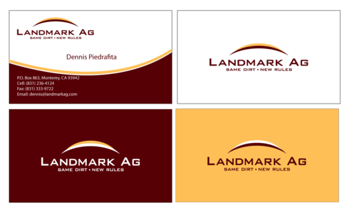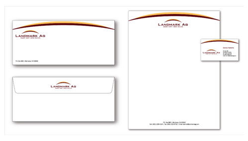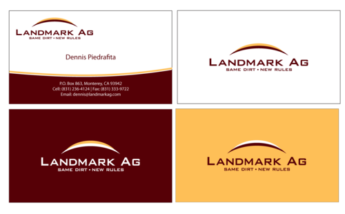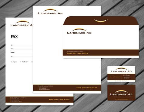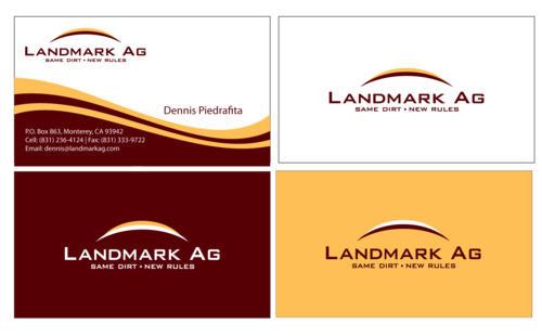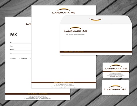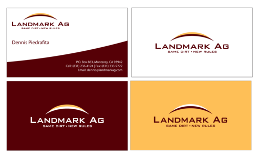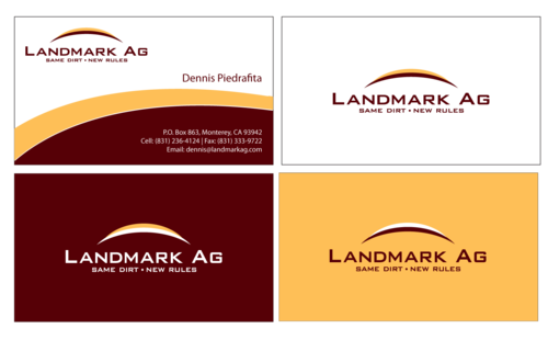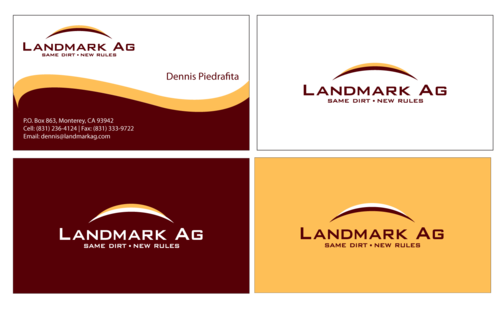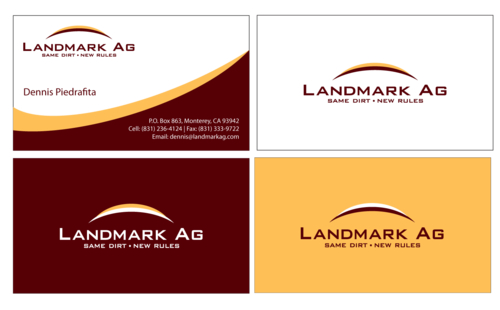 1. I want to use my logo and will upload it. 2. I like clean, uncluttered design. 3. OK to think a little out of the box. 4. May be OK to use a different font than logo. 5. May be OK to use tagline "same dirt - new rules" differently (i.e., not right under Landmark Ag as shown in logo).