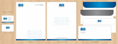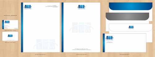 Business card, letterhead, continuation page, mailing label, faxcover, e-mail signature