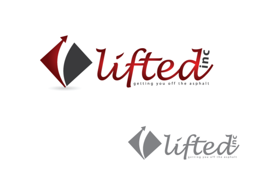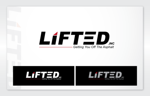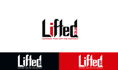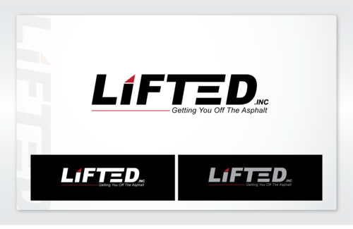 I Want "Lifted" being bigger font size with the "inc" being very small font size and then the tag line "getting you off the asphalt" in smaller fonts size also.