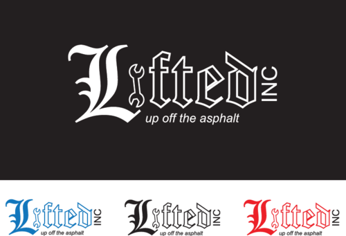 I Want "Lifted" being bigger font size with the "inc" being very small font size and then the tag line "getting you off the asphalt" in smaller fonts size also.