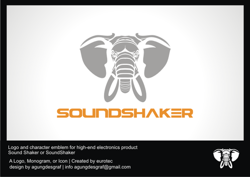 1) We want to have a logo that has both text and an character-based emblem (elephant). The elephant represents the power and thump created by its stomping. We want to convey the same idea with our product.