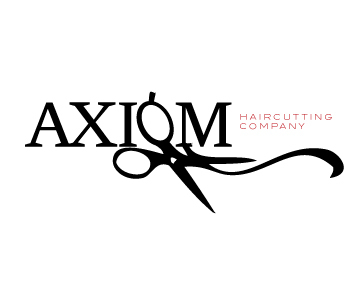Logo should use the word "AXIOM" in all caps and larger than the words "Haircutting Company" so that the word "AXIOM" could almost stand alone and the words "Haircutting Company" are more like a tag line than they are equal to AXIOM.