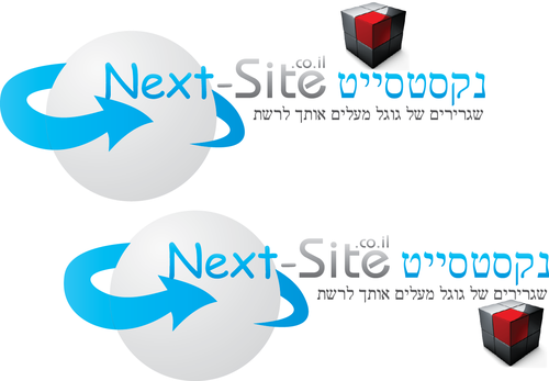 The design is for a web development company. We like the logo to contain our domain name next-site.co.il and our slogan in Hebrew (שגרירים של גוגל מעלים אותך לרשת). The logo should be in a transparent background that we will be able to use it in our website and business cards.