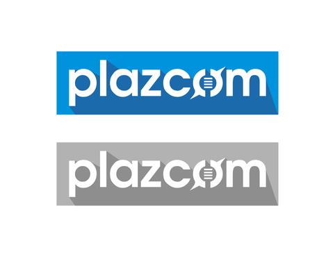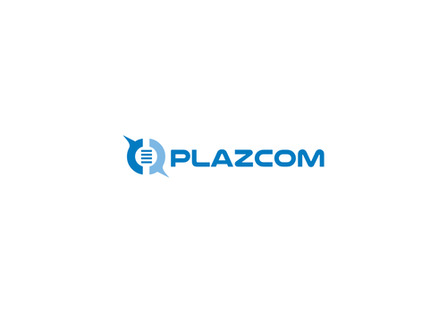 Logo for a classifieds website called plazcom.com it should be blue and white be flat and modern