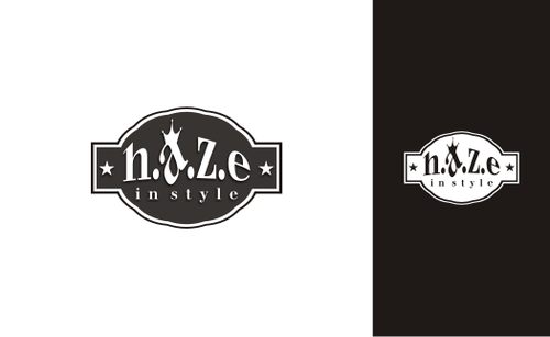We would like to have this logo printed on our cloth's labels. So imagine a black clothing label tag and put "haze" on it. Or maybe "h.a.z.e." A crown should be somewhere too. But you know better than i, where to locate it.