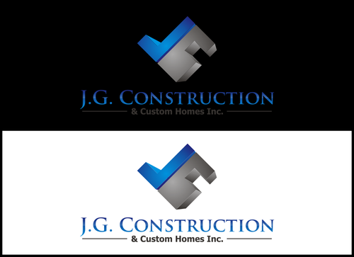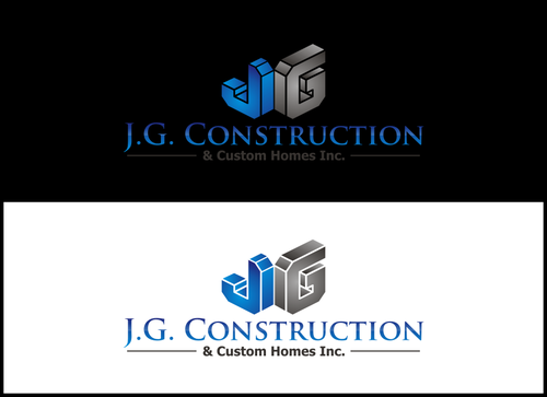 I like the idea of "JG" back to back in a symmetrical type shape with shading and/or shadowing, with "Construction" following. Then the bottom Line would be smaller font, "& Custom Homes Inc." Please use your creative talents, the above is just something to start with.