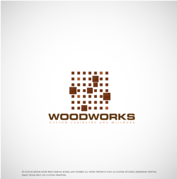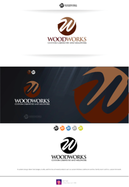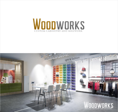 Id like the word "Woodworks" to become the main logo. Im up for all ideas. I want the logo to be "high end" looking but at the same time trendy looking. I don't have to use all three colors but I want the logo to have a natural feel. We are essentially a custom kitchen cabinet showroom that also designs various pieces throughout peoples homes.