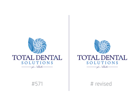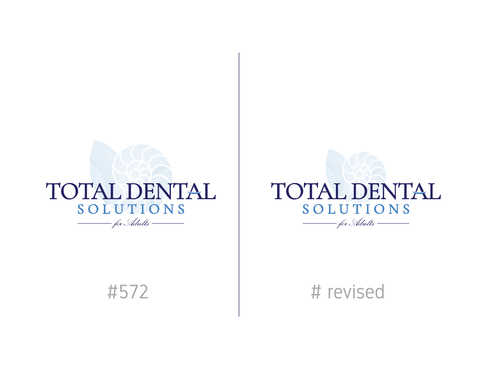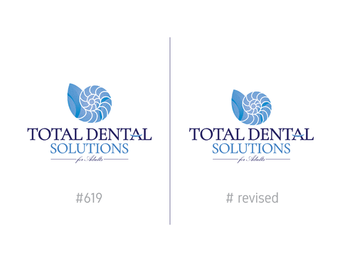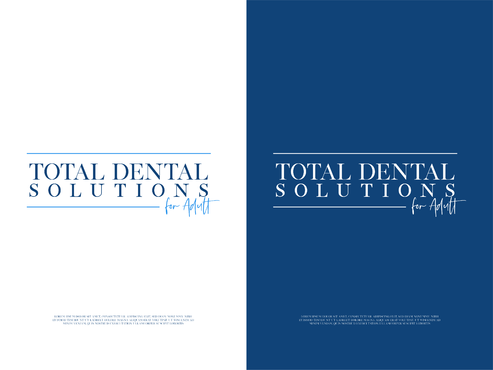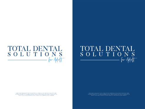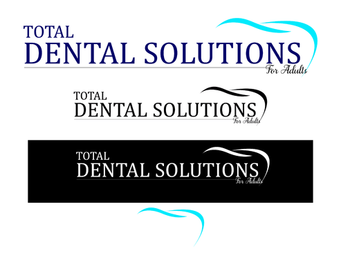 I am thinking I want the logo to emphasize "Total Dental Solutions" and deemphasize "for Adults" possibly by different font sizes, 2 lines or formatting "for Adults" in italic or somehow different from "Total Dental Solutions". Please do not use "cartoon" characters of people or teeth. If you design includes a tooth or teeth, it should be very abstract and sophisticated.