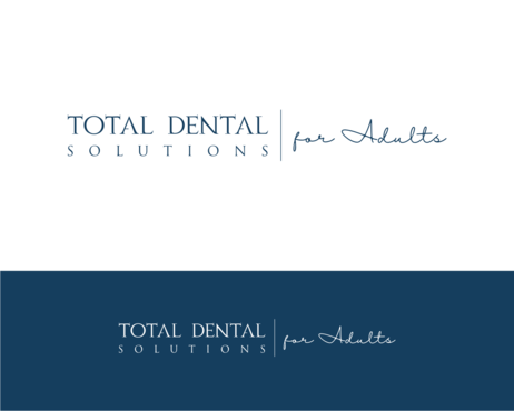 I am thinking I want the logo to emphasize "Total Dental Solutions" and deemphasize "for Adults" possibly by different font sizes, 2 lines or formatting "for Adults" in italic or somehow different from "Total Dental Solutions". Please do not use "cartoon" characters of people or teeth. If you design includes a tooth or teeth, it should be very abstract and sophisticated.