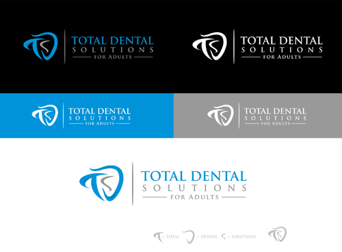 I am thinking I want the logo to emphasize "Total Dental Solutions" and deemphasize "for Adults" possibly by different font sizes, 2 lines or formatting "for Adults" in italic or somehow different from "Total Dental Solutions". Please do not use "cartoon" characters of people or teeth. If you design includes a tooth or teeth, it should be very abstract and sophisticated.