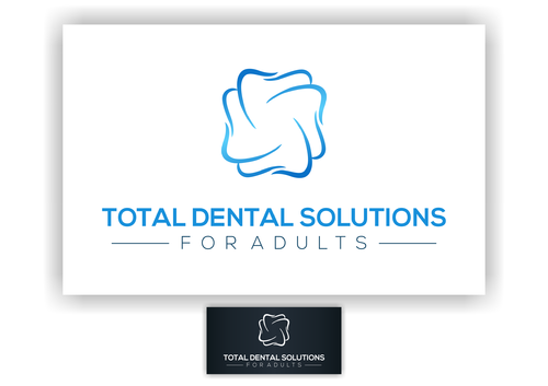 I am thinking I want the logo to emphasize "Total Dental Solutions" and deemphasize "for Adults" possibly by different font sizes, 2 lines or formatting "for Adults" in italic or somehow different from "Total Dental Solutions". Please do not use "cartoon" characters of people or teeth. If you design includes a tooth or teeth, it should be very abstract and sophisticated.