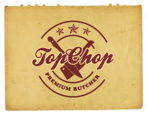 Top chop will be a very high end butcher - the logo will need to reflect the highest quality in meat cuts - the shop will have lots of timber and have a homely market feel .