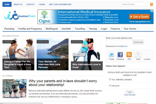 I run www.internationalcouples.net,a blog for international couples and multicultural families.I am about to start a digital/printed magazine whose main topics are described by the categories in the main menu on my site. I also need a compact version of the chosen logo for social networks.