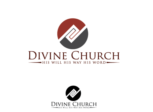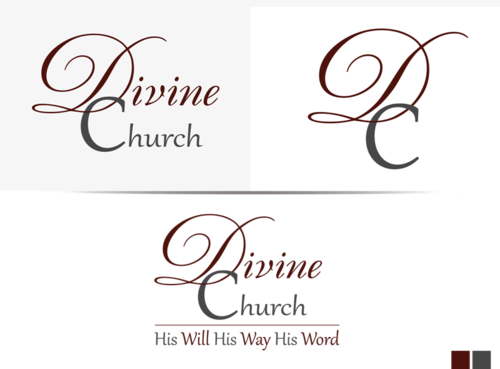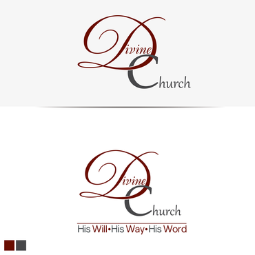 I would like to see the word Divine in Maroon and Church in Charcoal. I would like the word Divine to be in a different font (something Fancy but wash to read) than the word Church. The word Church font should be simple but still work well with the word Divine font. The C in church should cross through the D in Divine. (See my uploaded concept) the word His in the tag line should be in Charcoal and the words Will Way Word should be in Maroon.