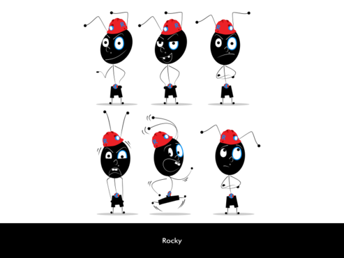 what about an animated charactor ant some one i maybe can use for commercials and advertisment distinguish my company maybe squash by globe or looking afraid or looking around the globe or muscular ant holding the globe up. I dont know but highlight mascot. name mascot rocky.