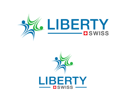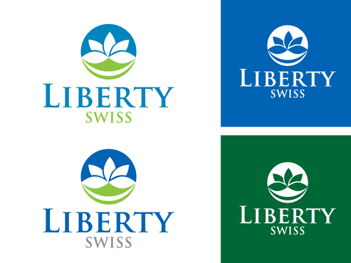 we want our logo to be a combination of "Liberty Swiss" and an abstract symbol. if the symbol is designed separated from words, it should be placed either left side or top of words. the emphasis should be more on "Liberty" and we want "Swiss" be designed in a way that it will be possible to remove it later. the logo should be minimal. trusty and modern. the symbol can be either normal or perspective. the symbol can be a creative combination of some elements such as tablets, capsules, or chemical reaction complexities or the origin of this brand (Swiss nationality).