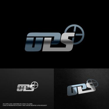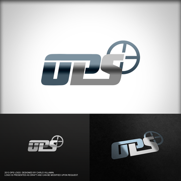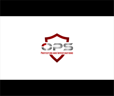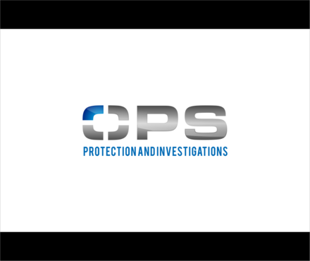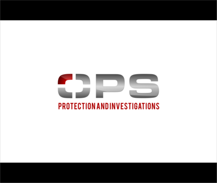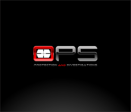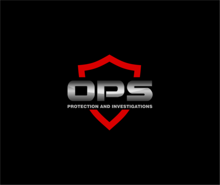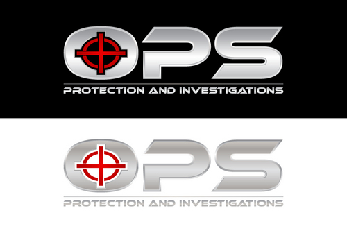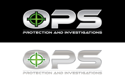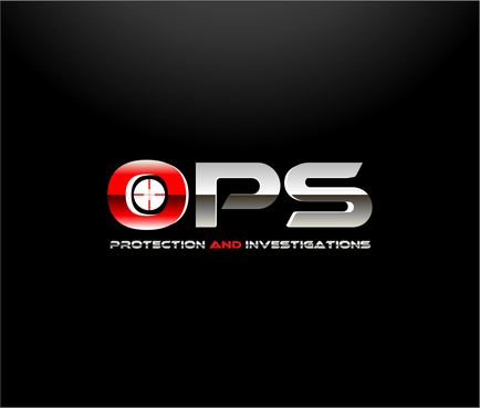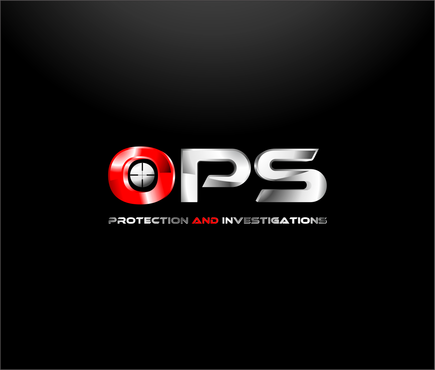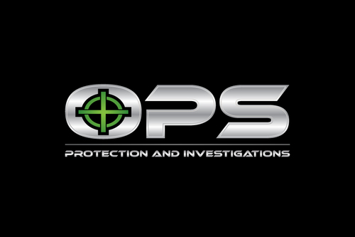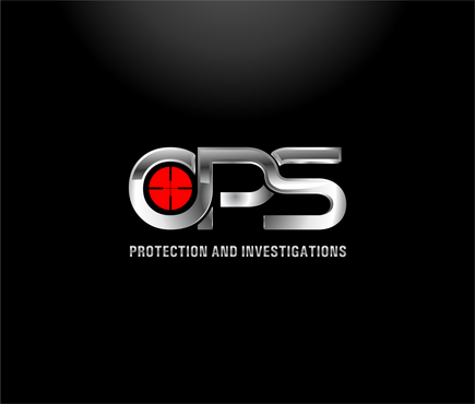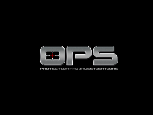 "OPS" written bold in a chrome "cut metal" look with a Black background. Also a simple scope reticle inside the "O" in either red or Green. Protection and Investigation in the same Chrome look centered under "OPS".