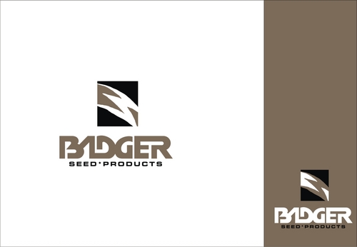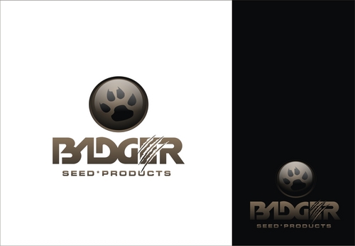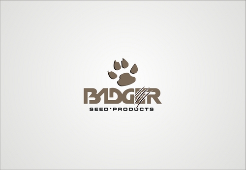 This is a logo for a seed company that sells primarily grass seed, but also other seed related products. We would like a simple logo with "Badger" in some type of blocky lettering that lends well to embroidery. We would like an illustration of some type incorporated into the logo (badger head, Claw/paw print, claw marks).