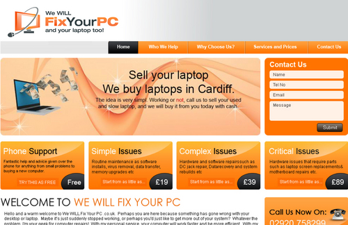 I am a guy who runs a small computer repair company based in South Wales in the UK offering my services to the city I live in (Cardiff). After running my own homemade website for the last few years while testing the market I have decided that this is what I want to do for the future so am investing in a new website and design work to make me stand out from the competition and to stand up with a new aggressive advertising campaign to start shortly.