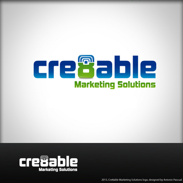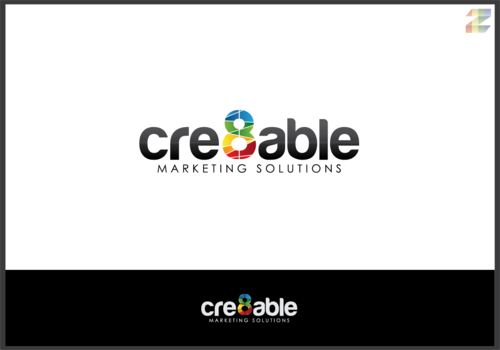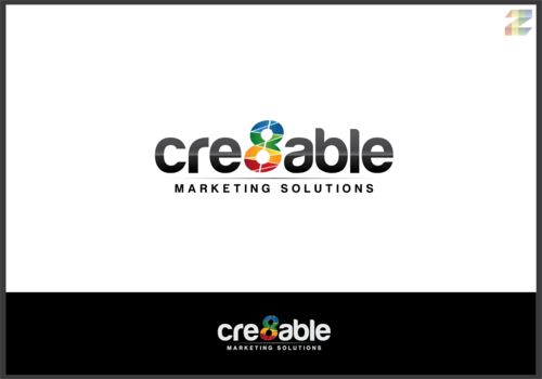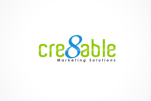 Enhance the 8 within the cre8able. Make cre8able bigger than 'Marketing Solutions."