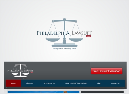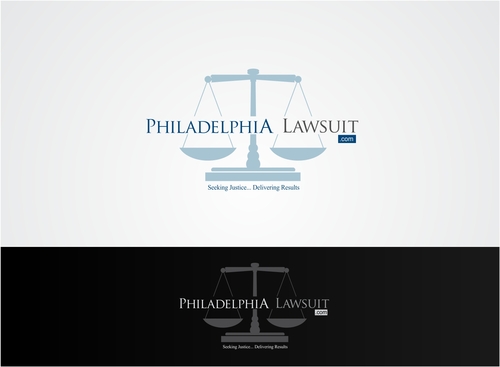 Otherwise, I picture the simple/non-ornate scales of justice in the background (perhaps faded blue) being used to separate Philadelphia from Lawsuit.com. The words should be the focus and most prominent. The Scales of justice should be somewhat background. I've attached a drawing but it does not convey enough how much I want the scales of justice to be in the background and the words prominent. (See attached drawing)
