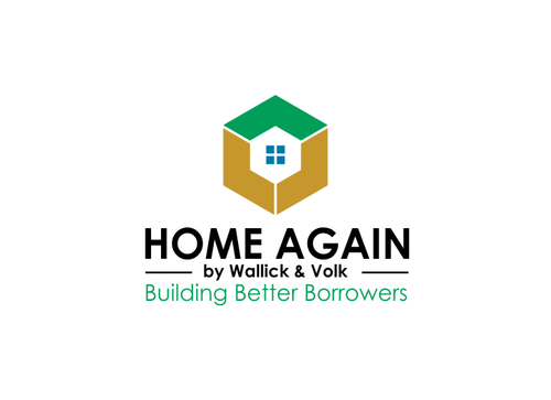 Home Again is a credit coaching service to help people, especially those who have had a short sale or foreclosure, to improve their credit and be able to qualify for a home again. Therefore, putting a "roof line" over the words "Home Again," or shaping the words like a home or some otherway of representing home ownership would be great. The words "by Wallick & Volk can be smaller and simple"