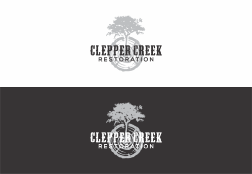 Font Style: Possibly the words "Clepper Creek" in a more rustic font, vs. "Restoration" in a more modern/urban font and feel.