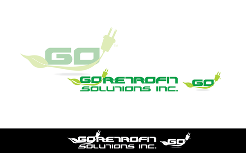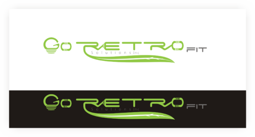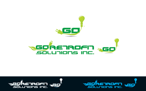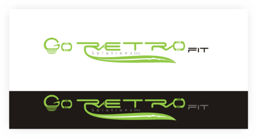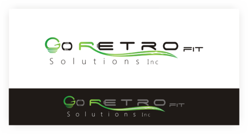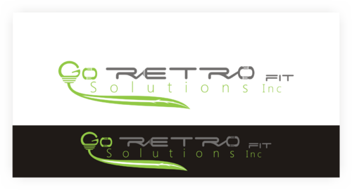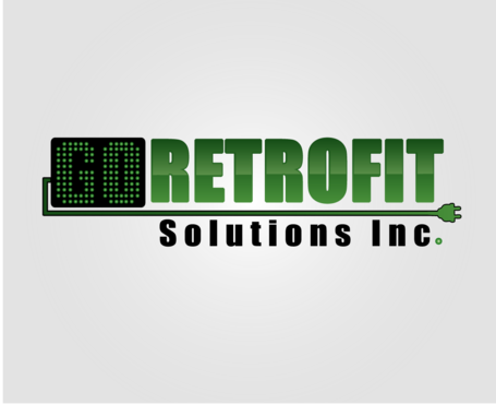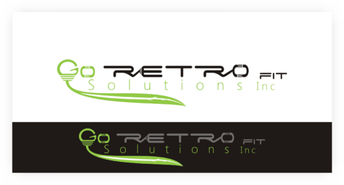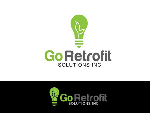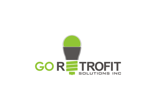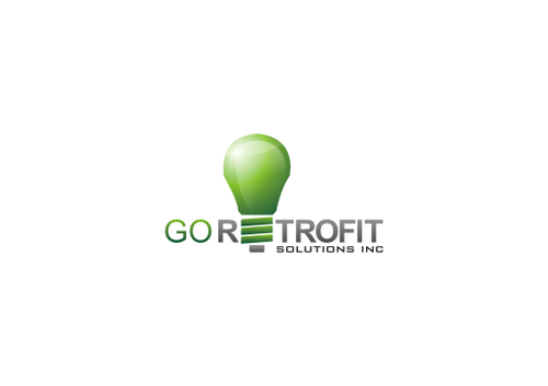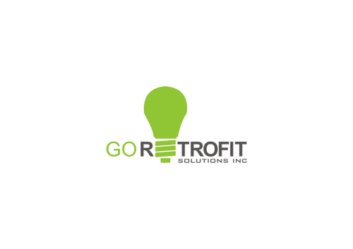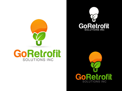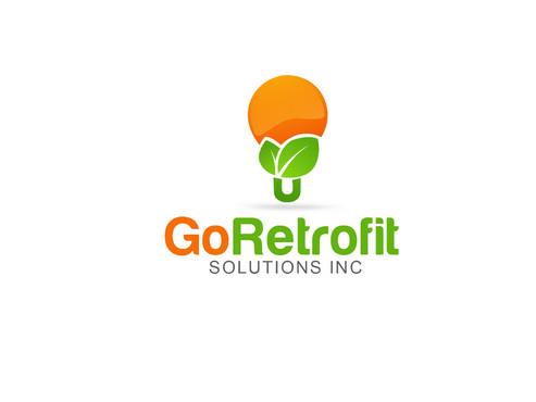 The main title for the logo should be "Go Retrofit" with "Solutions Inc." being underneath it in small lettering. We are an energy conservation company that utilizes LED lighting and other technologies to achieve this. We would like the logo to convey a progressive thinking eco-friendly solutions organization. We'd like the logo to incorporate a bulb, leaf, electrical plug, outlet, or combination of any of the above if possible.