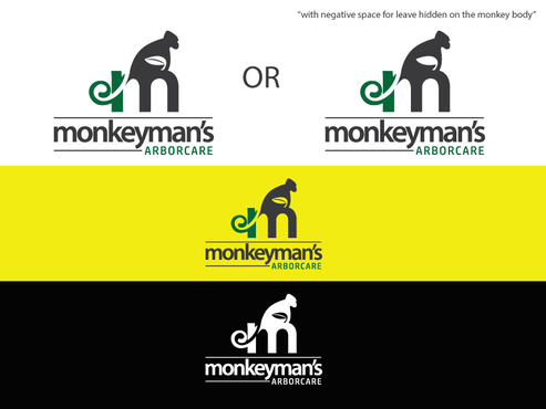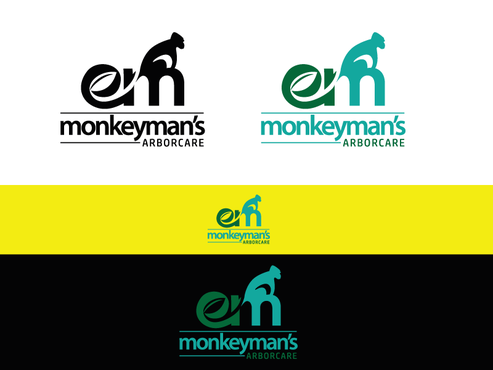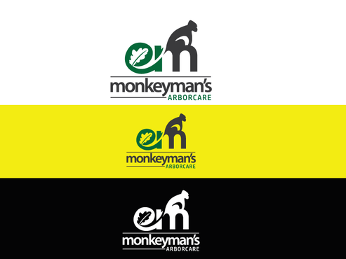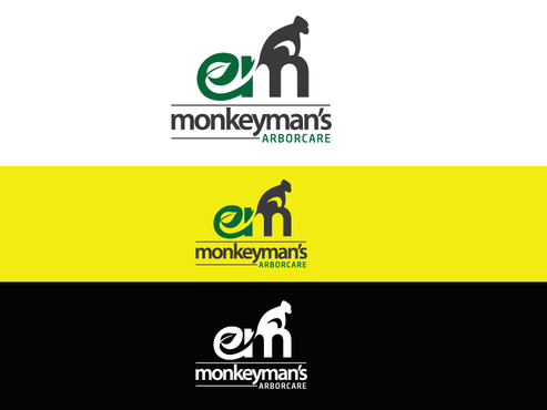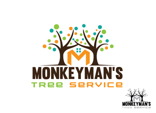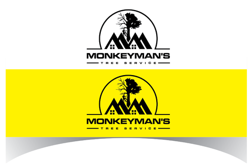 The name "Monkeyman's" comes from the fact that we use tree climbers for tree removal and pruning. We climb trees with proficiency and ease, resembling a monkey. We also use cranes to remove difficult trees, and the use of an "M" or "MM" with using a crane and/or a house could be cool. There are traditional logos that have a tree and professional font that could work. Ultimately I would like something that is easy to see on YELLOW safety shirts. I want a logo that is easy to read but also very creative and stands apart from typical tree companies.